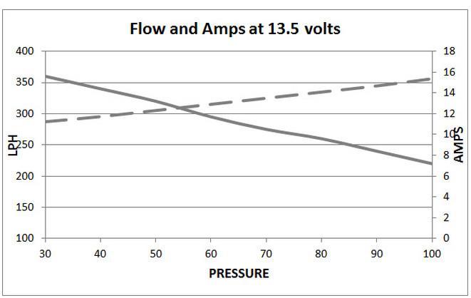 Flow rate of 340LPH (40psi, 13.5v)
