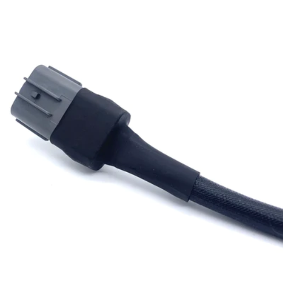 How is this harness different? Both leads come out from the valve cover on the right side and are concealed by a single wire sheath. The right side connector makes its hidden connection behind the thermostat housing and the left side lead can be ran under or over the intake manifold to make its connection behind the valve cover for another hidden connection.