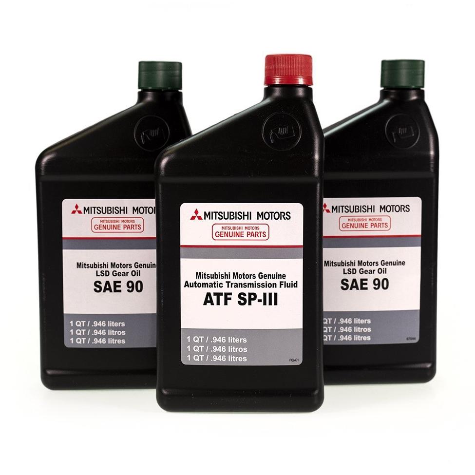 This drivetrain fluids package includes 2 quarts of Mitsubishi DiaQueen GL5 LSD Gear Oil, 1 quart of Mitsubishi Diamond ATF SP III Transmission Fluid (for automatic transmission), and 3 quarts of A Redline Transmission Fluid cocktail (for manual transmission).