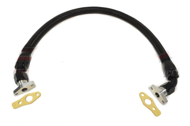 STM -10AN Oil Return Line (Braided Nylon) (Factory Style Turbo) – Evo 7-9 The STM -10AN Turbo Oil Return Line for Evo VIII-IX is designed to be used with a stock turbo or factory style, bolt-on turbo such as the FP Red, Black, Zero, Zephyr, etc. Includes soft braided nylon line, high-quality fittings and Mitsubishi gaskets. Features Braided Nylon line won’t scratch finishes High-Quality Black Fittings – Billet Aluminum Drain Flanges Gaskets Included Applications 2001-2006 Mitsubishi Lancer Evolution 7/8/9 What’s in the Box? (1) 2 Feet of -10 Braided Nylon Hose (1) 30° -10AN Swivel Fitting to Turbo (1) 60° -10AN Swivel Fitting to Oil Pan (2) STM Mitsu-Series -10AN Oil Drain Flange (2) OEM Mitsubishi Oil Drain Gasket (MR258477) Warranty Manufacturer Standard Warranty